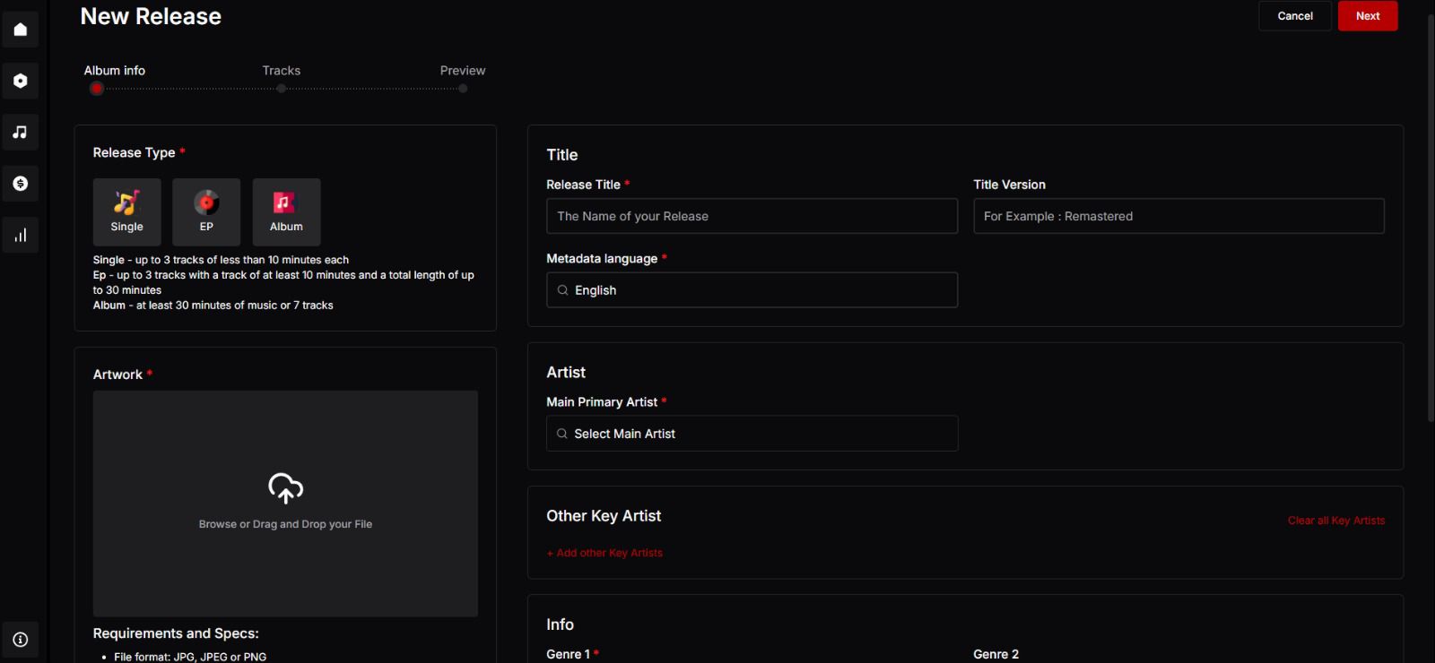 - Subir canciones, EPs y álbumes sin complicaciones